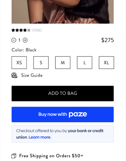 A Merchant can invoke Paze when a consumer enters their cart with the intent to make a purchase. Depending on the Merchant’s implementation, this can facilitate both guest and registered users’ transactions.